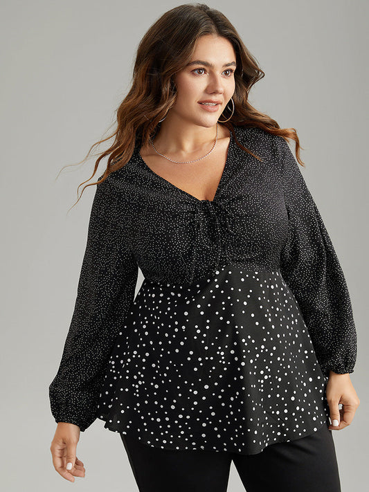 Polka Dot Ruched Ties Lantern Sleeve Blouse