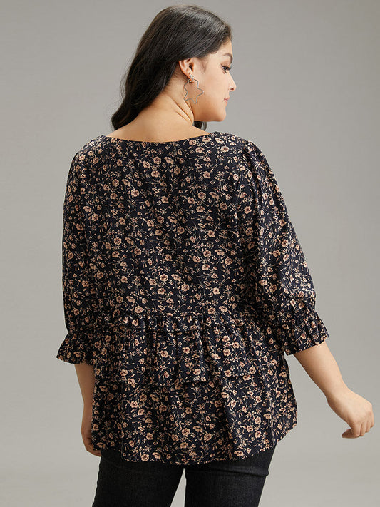 Ditsy Floral Tiered Ruffles Gathered Blouse