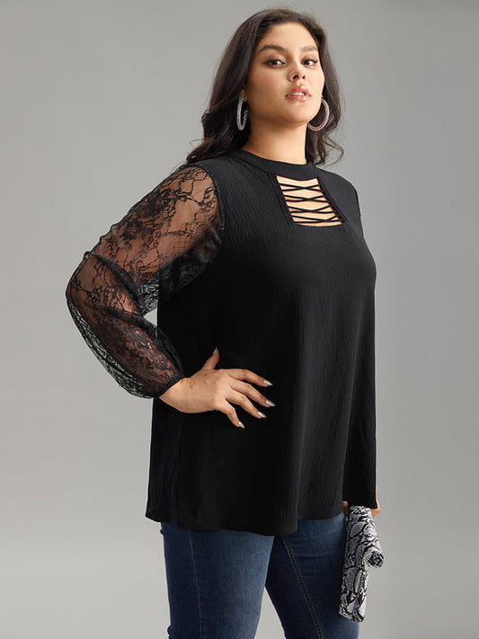 Halloween Cut Out Elastic Waist Guipure Lace Blouse