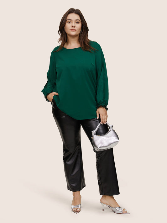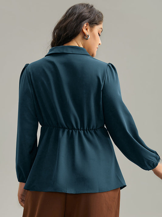 Static-Free Plain Metal Detail Keyhole Shirred Blouse