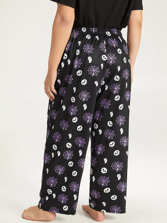 Halloween Skull & Spider Web Print Pocket Sleep Pants