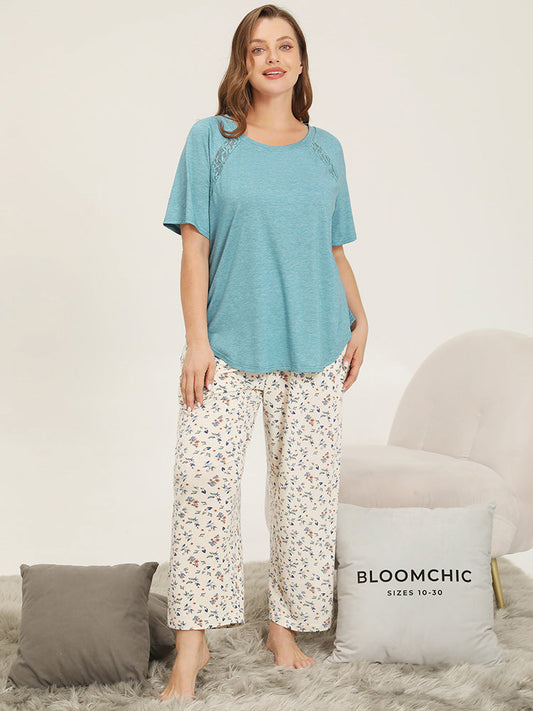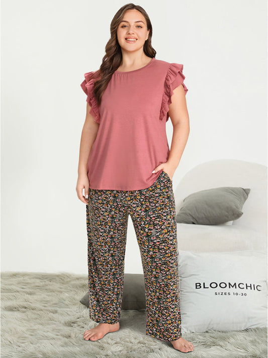 Floral Ties Ruffle Trim Elastic Waist Sleep Pants