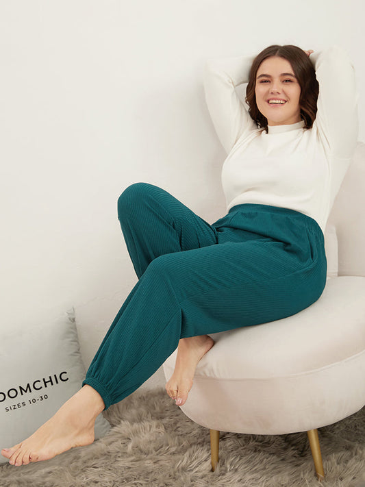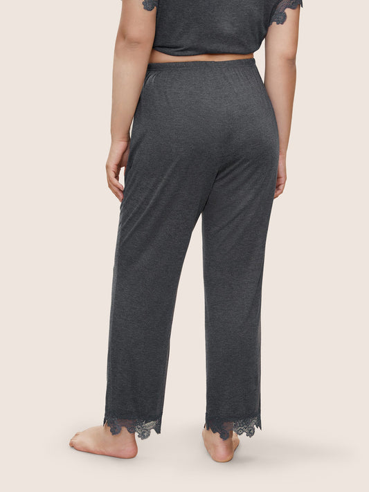 Plain Elastic Waist Lace Panel Sleep Bottoms