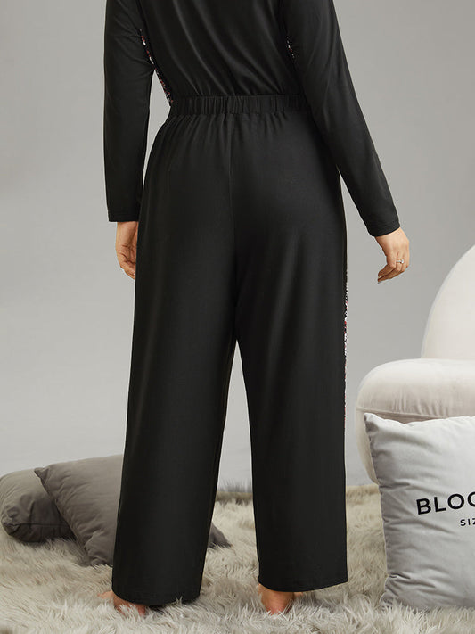 Silhouette Floral Print Elastic Waist Sleep Bottoms