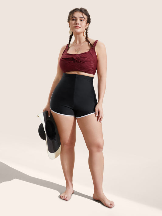 Contrast Trim Elastic Waist High Rise Swim Bottom