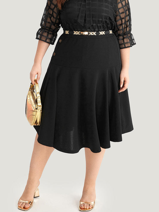 Contrast Button Detail Bell Woven Skirt