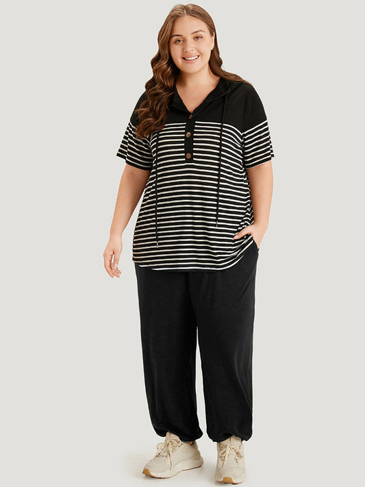 Plain Pocket Drawstring Elastic Waist Carrot Pants