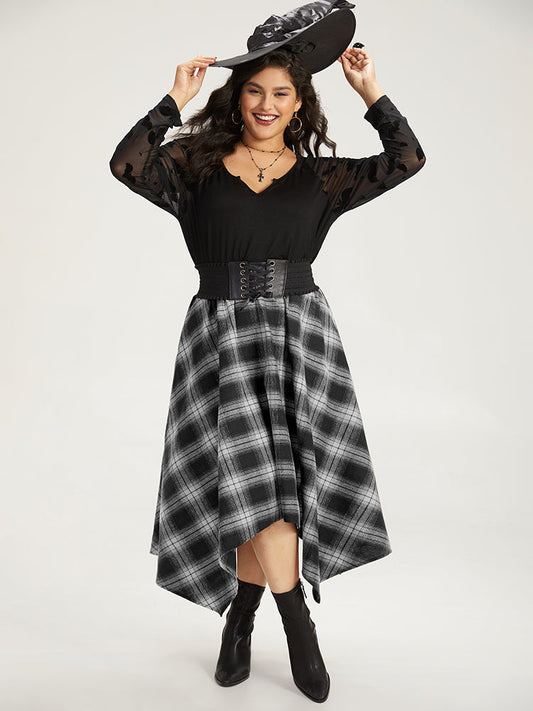 Halloween Plaid Pocket Hanky Hem Woven Skirt