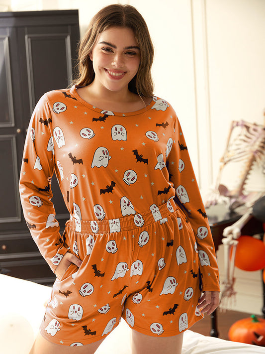 Halloween Bat Print Elastic Waist Sleep Shorts