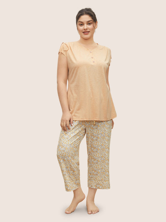 Plants Lace Patchwork Elastic Waist Sleep Bottoms