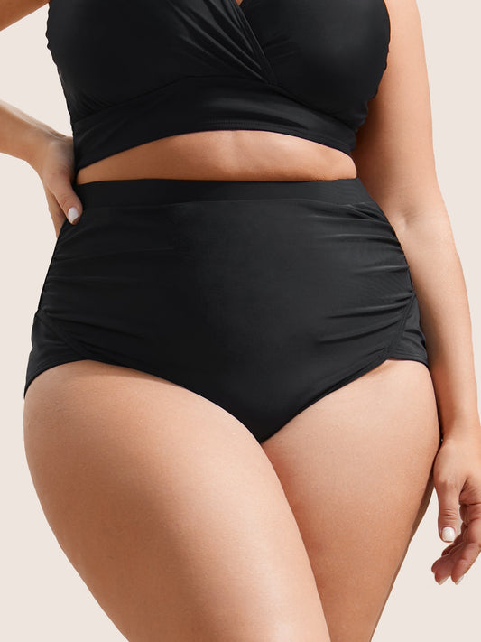 Solid Buckle Detail Ruched Swim Bottom