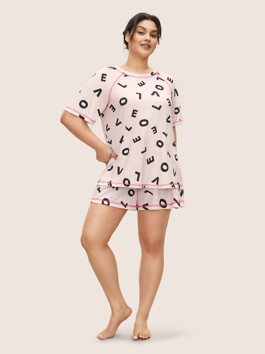 Letter Print Drawstring Contrast Trim Sleep Bottoms