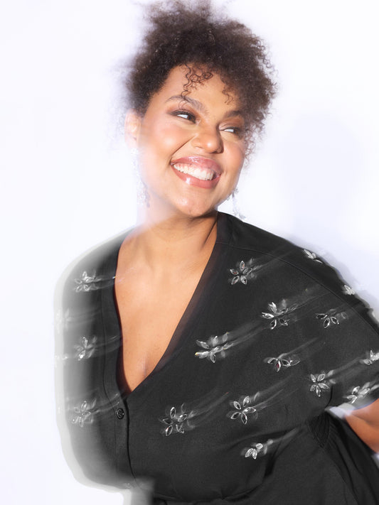 Sunflower & Sun Print Arc Hem Notched Raglan Sleeve Dress
