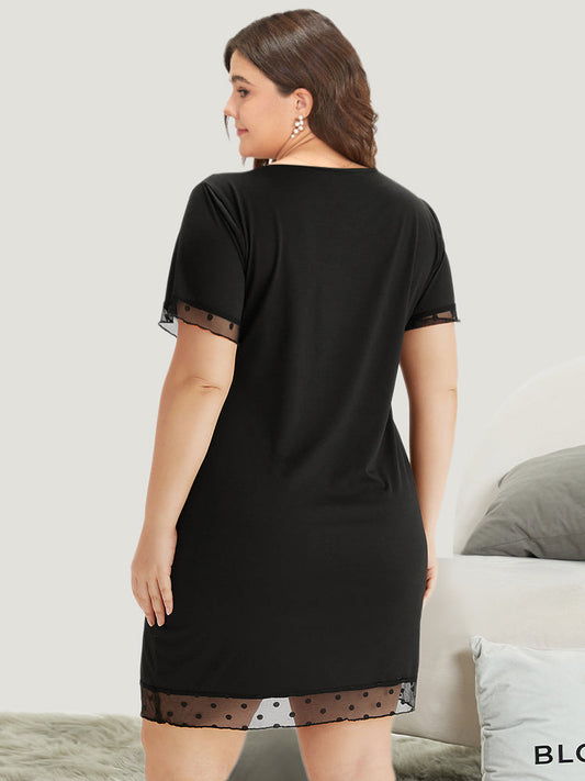 Polka Dot Crochet Mesh Pocket V Neck Sleep Dress