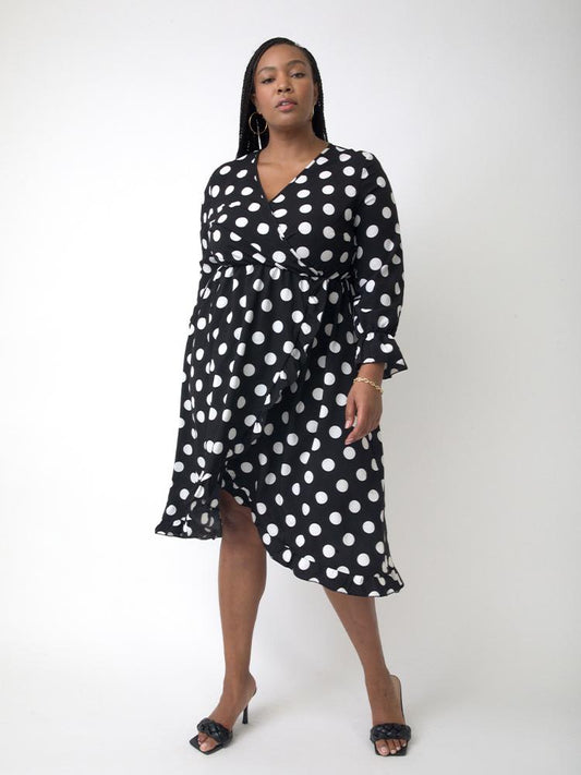 Irregular Polka Dot Wrap Dress