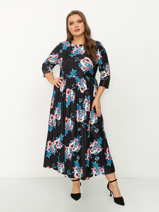Floral Round Neck Maxi Dress