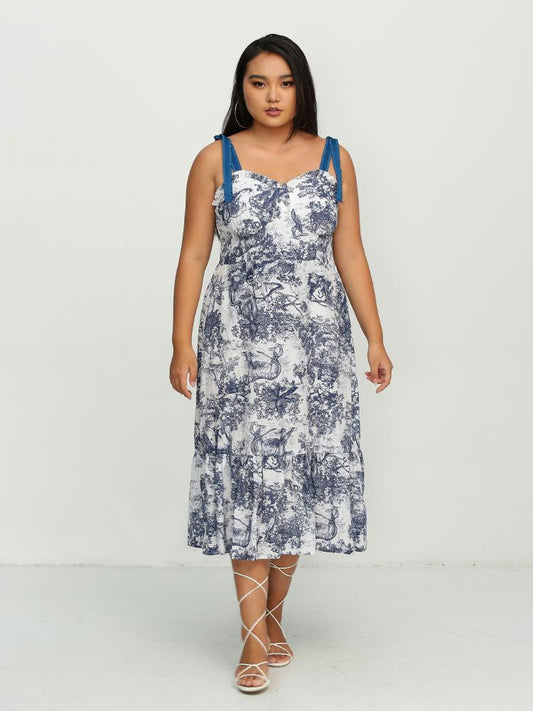 Painting Knotted Shoulder Frill Trim Dress