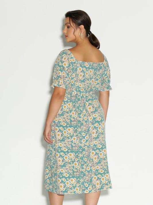 Square Neck Floral Dress