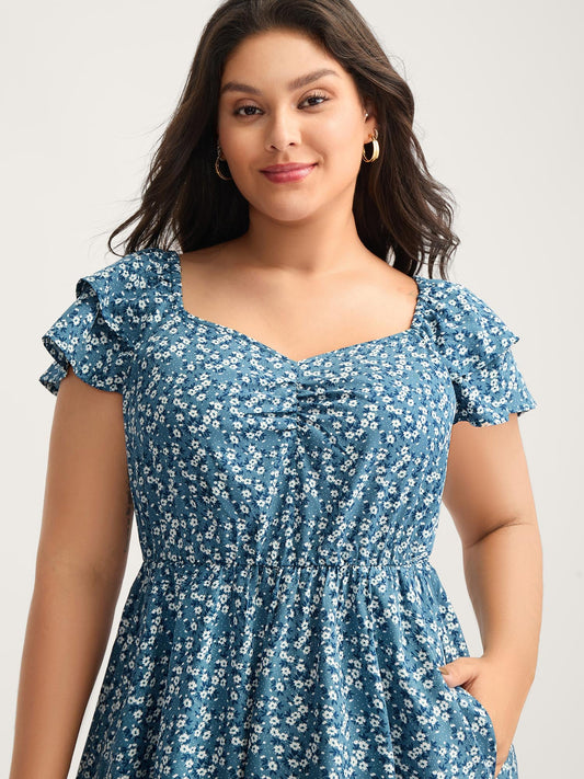 Ditsy Floral Print Layered Ruffled Sleeve Dress
