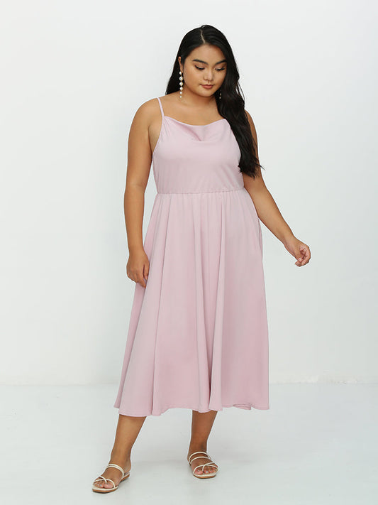 Heart Neckline Solid Plicated Detail Midi Dress