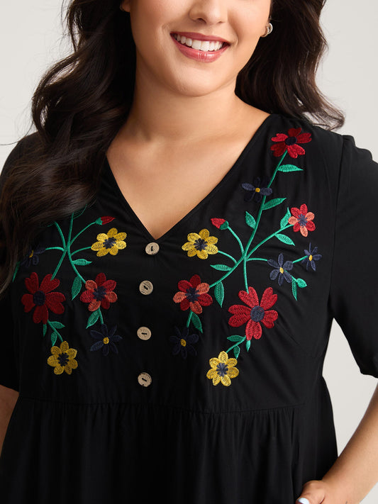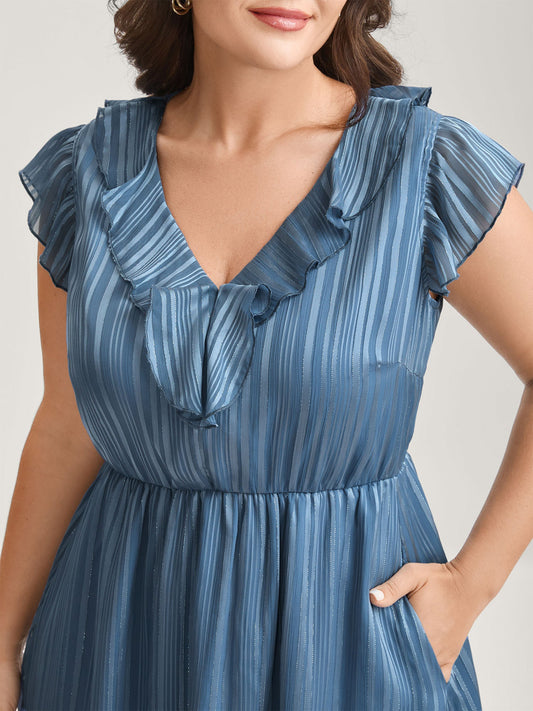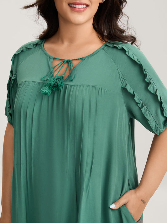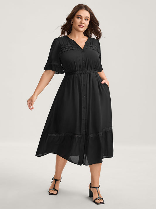 Lace Trim Stretchy Waist Pockets Midi Dress