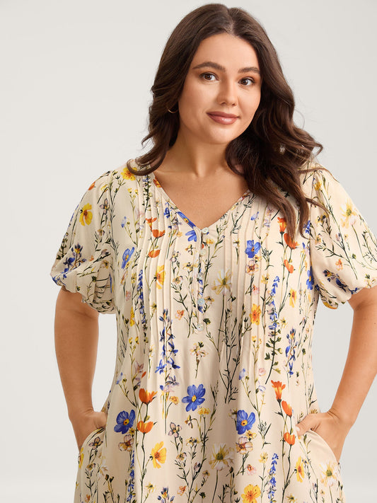 Paisley Print Stretchy Waist Pockets Midi Dress