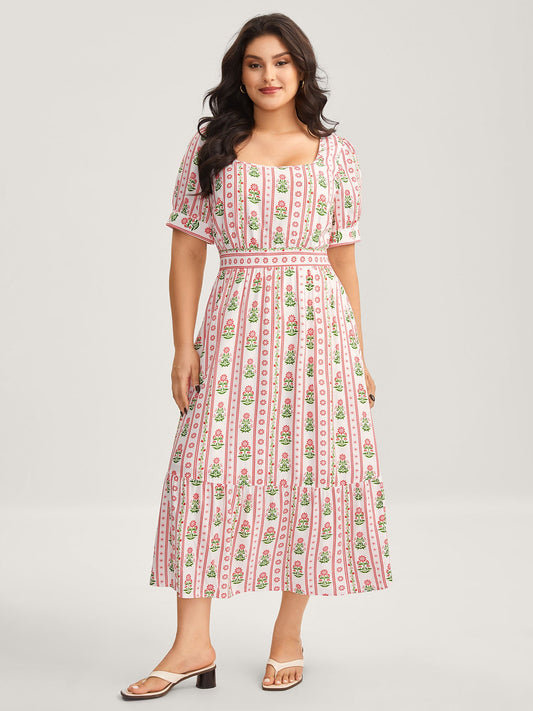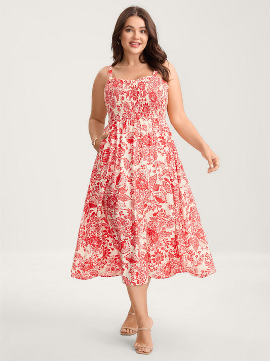 Rayon Paisley Print Cinched-Waist Midi Dress