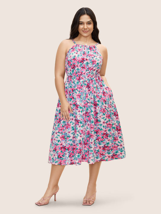 Ditsy Floral Pocket Drawstring Ruched Dress