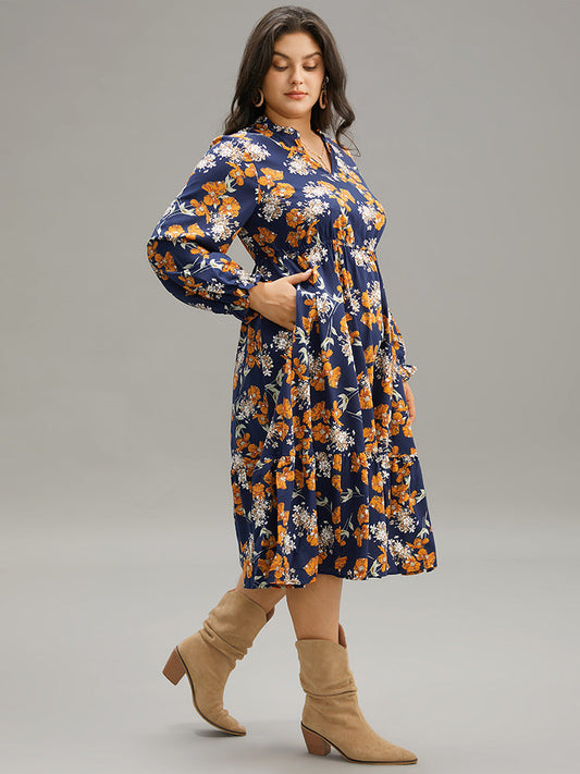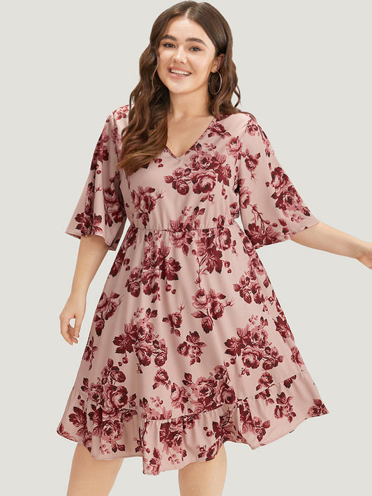 Floral Print Pocket Flounce Sleeve Ruffle Dress