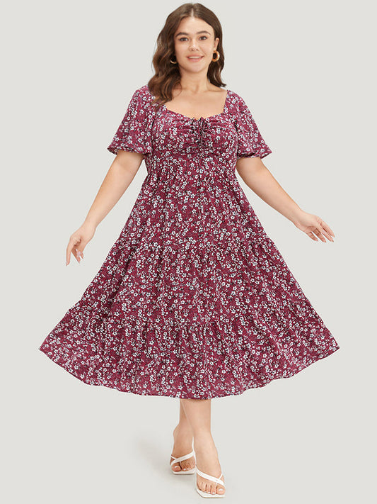 Ditsy Floral Pocket Drawstring Ruched Flutter Sleeve Dress