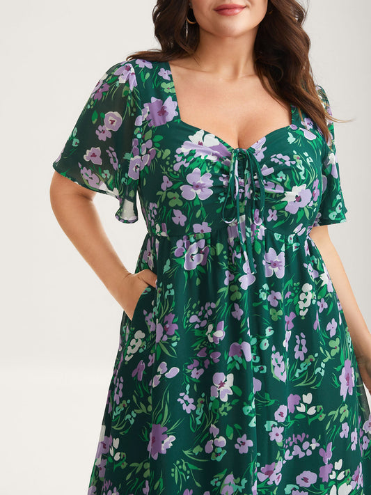 Shirred Off-Sleeve Floral Print Maxi Dress