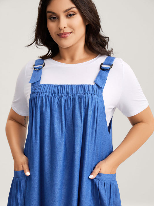 Rayon Lace Trim Cinched-Waist Midi Dress