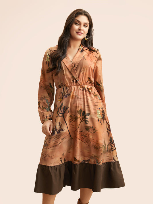 Landscape Pattern Elastic Waist Midi Dress