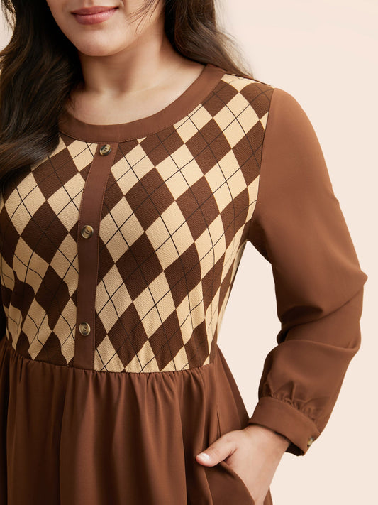 Geometric Crew Neck Button Detail Dress