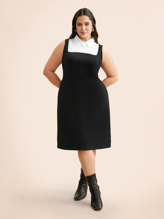 Contrast Patchwork Tucked Seam Sleeveless Dress