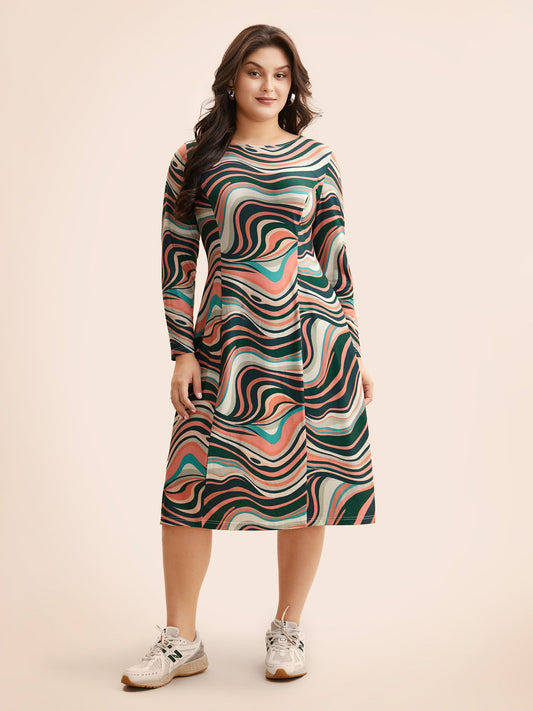 Water Ripple Boat Neck Midi Dress