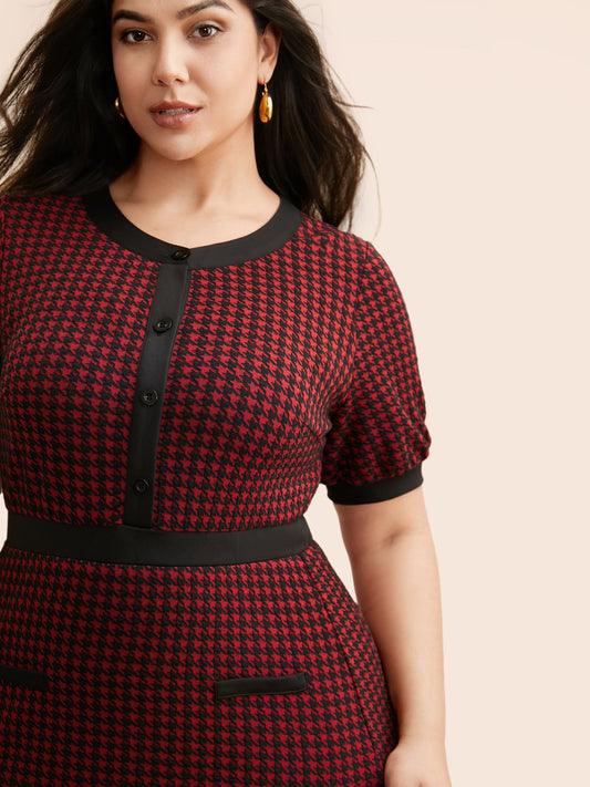 Houndstooth Button Up Flap Detail Dress