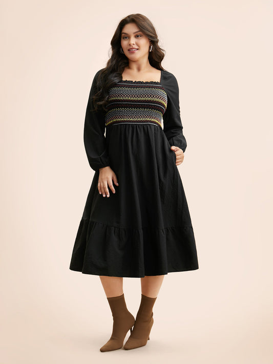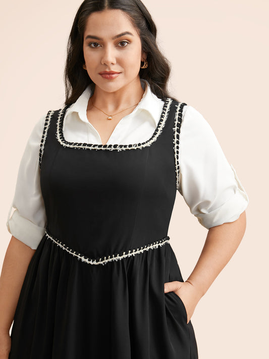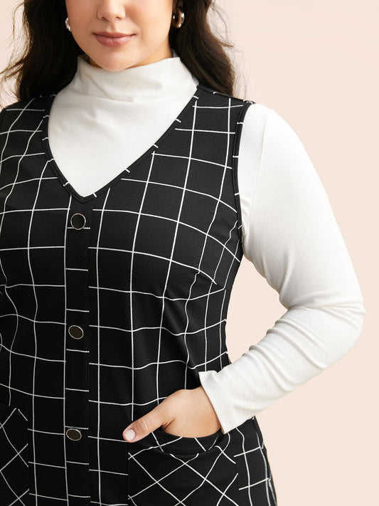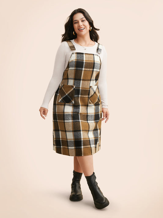 Plaid Ruffle Hem Flap Detail Belted Dress