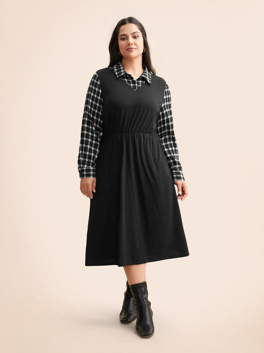 Plaid Patchwork Elastic Waist Midi Dress