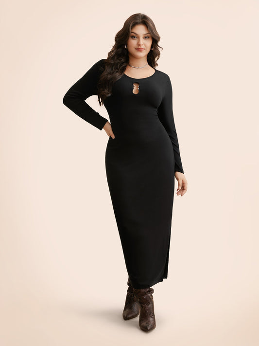 Metal Detail Keyhole Split Hem Dress
