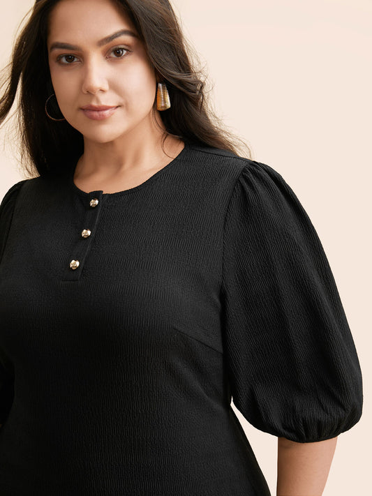Texture Button Up Puff Sleeve Dress