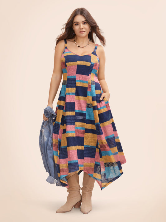 Notched Bandana Geometric Ruffle Sleeve Dress