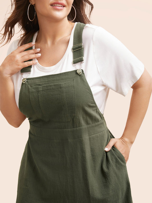 Solid Patched Pocket Overall Dress