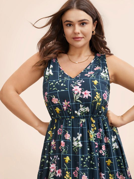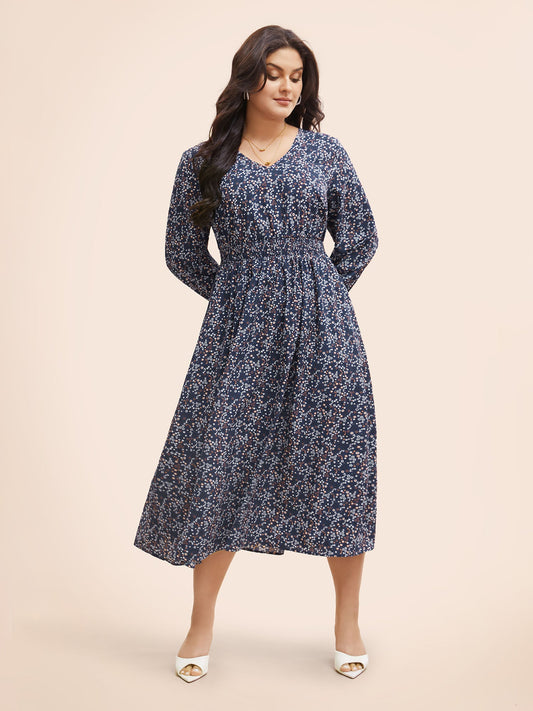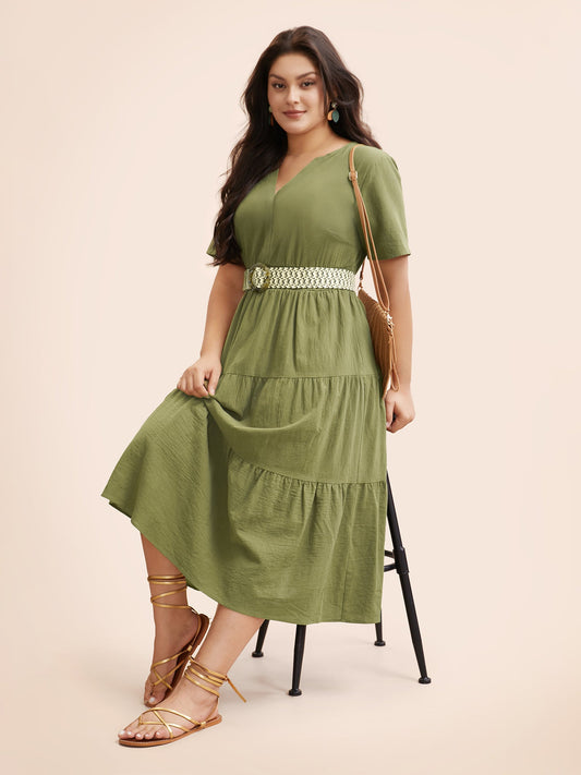 Plain Ruffle Trim Button Detail Drawstring Dress