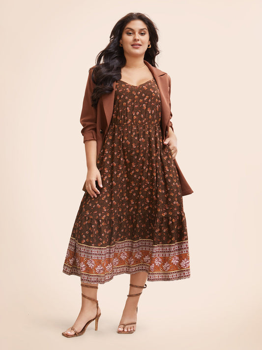 Leopard Patchwork Tie Knot Ruffle Layered Hem Dress
