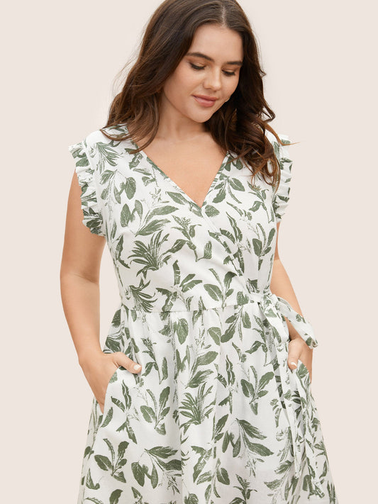 Floral Print Wrap Ruffle Cap Sleeve Dress