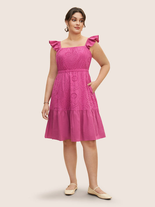 Broderie Anglaise Elastic Waist Ruffle Trim Dress