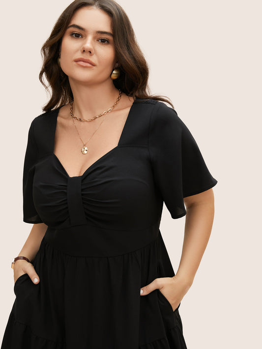 Heart Neckline Ruched Ruffle Layered Hem Dress
