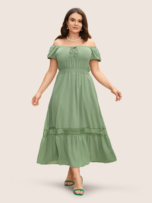 Guipure Lace Tie Knot Raglan Sleeve Dress
