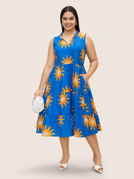 Sun Print Tie Knot Ruffle Layered Hem Dress